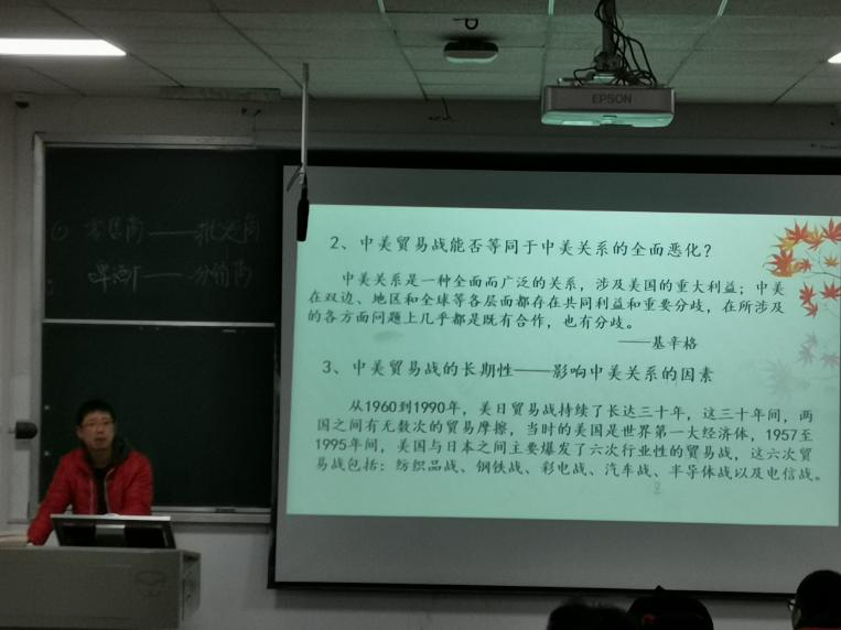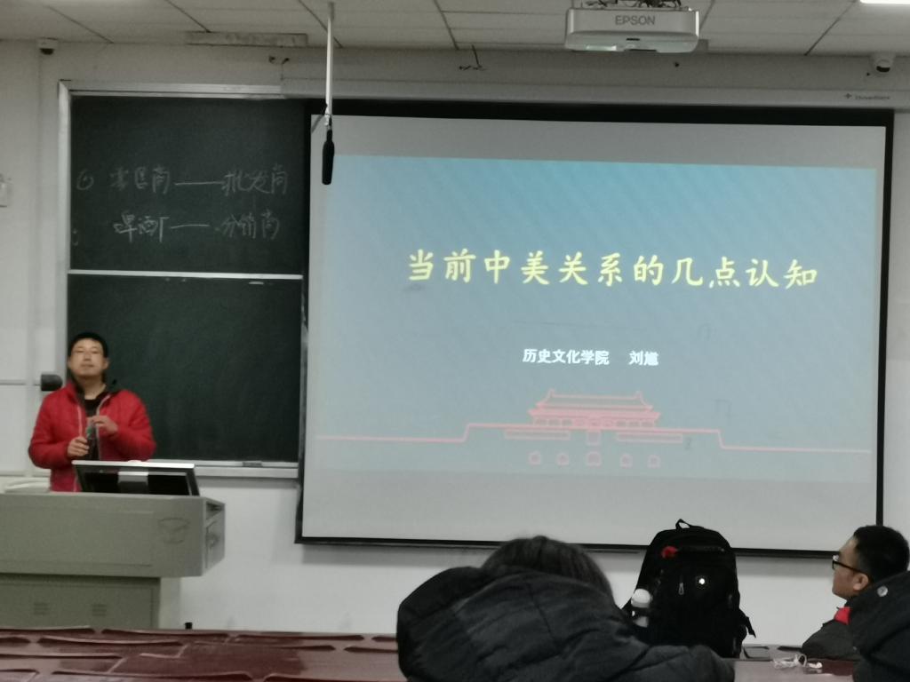 11月25日下午2点,历史文化学院刘馗老师为同学们讲授关于“中美关系认知”相关知识。91传媒