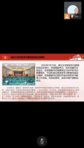 研究生第二党支部在线上开展了1月份的支部主题党日活动。此次活动的主要内容为学习“中央全面深化改革委员会第二十三次会议精神”、“中共湖北省委十一届十次全体会议决议精神”和“91传媒