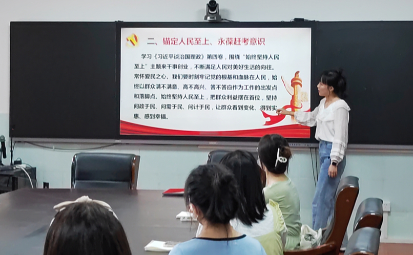 支部党员将所学内容与日常学习生活紧密联系,并发表观点。廖京瑶同志、潘慧苗同志说到,应在日常学习与工作中进一步规范自己,不断加强自身理论素养提高政治站位,且内化于心外化于行。