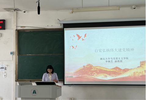 副教授李婉芝老师讲授题为“自觉弘扬伟大建党精神”的形势与政策课。