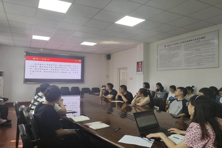 研究生第一党支部在学院四楼会议室,开展学习贯彻习近平新时代中国特色社会主义思想主题教育专题组织生活会,并召开本月主题党日活动。支部全体党员参加会议,会议由支部书记马艳苹同志主持。