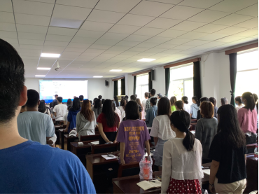 活动第一项,全体起立,奏唱国歌。老师和同学们站姿挺拔、歌声铿锵,场面庄严肃穆。
