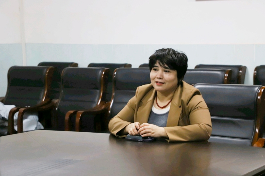 (图为美娅莎尔·阿布都拉老师会前与同学们交流)