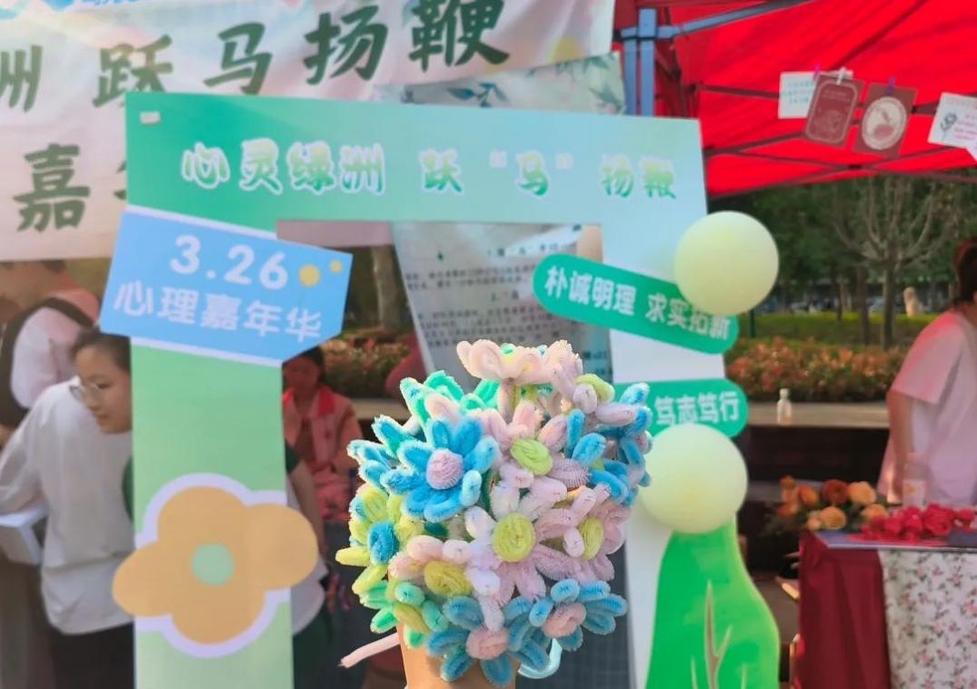 “芯宠”服务队策划以“心灵绿洲,跃‘马’扬鞭”为主题的活动,以沉浸式互动体验为核心,巧妙地将心理健康教育与趣味游园融为一体,吸引了众多师生积极参与,成为了校园春日里一道绚烂的风景。