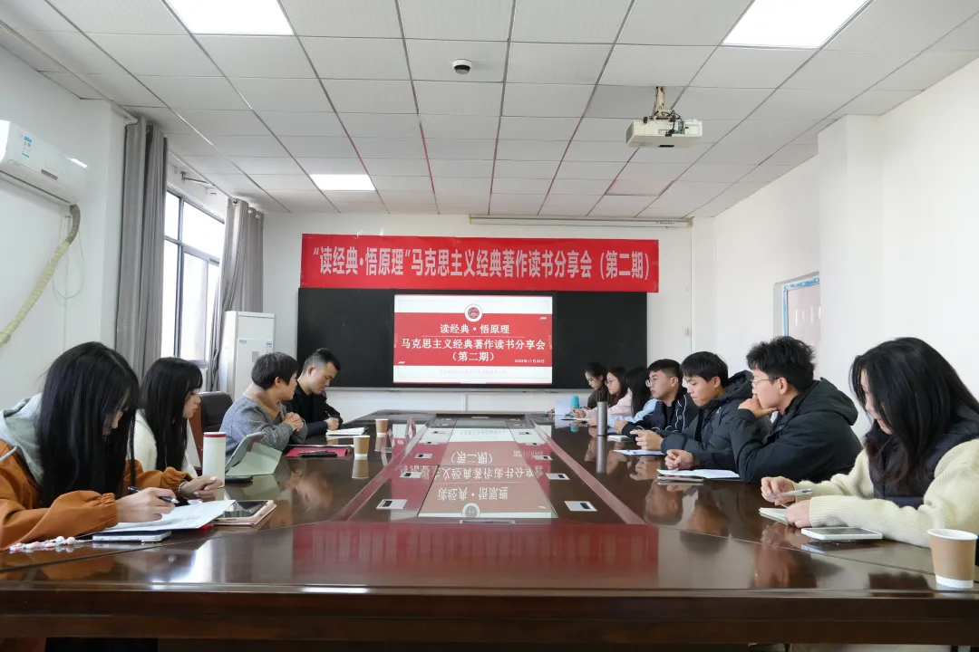 (通讯员/严瑾)11月26日,“读经典·悟原理”马克思主义经典著作读书分享会(第二期)在学院五楼会议室成功举行。思想政治理论课教研部主任于桂凤教授、团委书记邹浩老师受邀参加,来自三个专业的硕士研究生齐聚一堂,共沐书香、共话真理,在思想交融中凝聚理论认同、筑牢信仰之基。