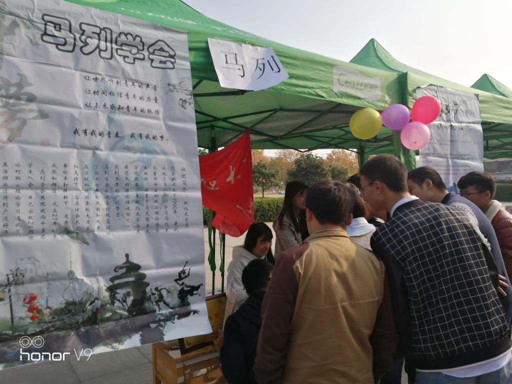 社团联合会招新负责人与我校其他社团招新负责人一起搭车赴通识教育学院开展社团招新活动。在马列主义学习研究协会、沙湖论坛和廉政文化学习协会各负责人布置好招新帐篷之后,招新活动于上午九点正式开始。