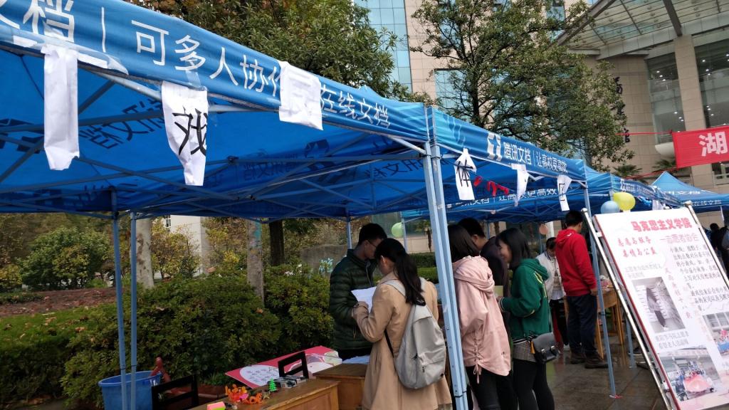 志愿者结合时代背景以及专业特点,设计了以亲情为主题的宣传窗口,引来大学生群体纷纷驻足。