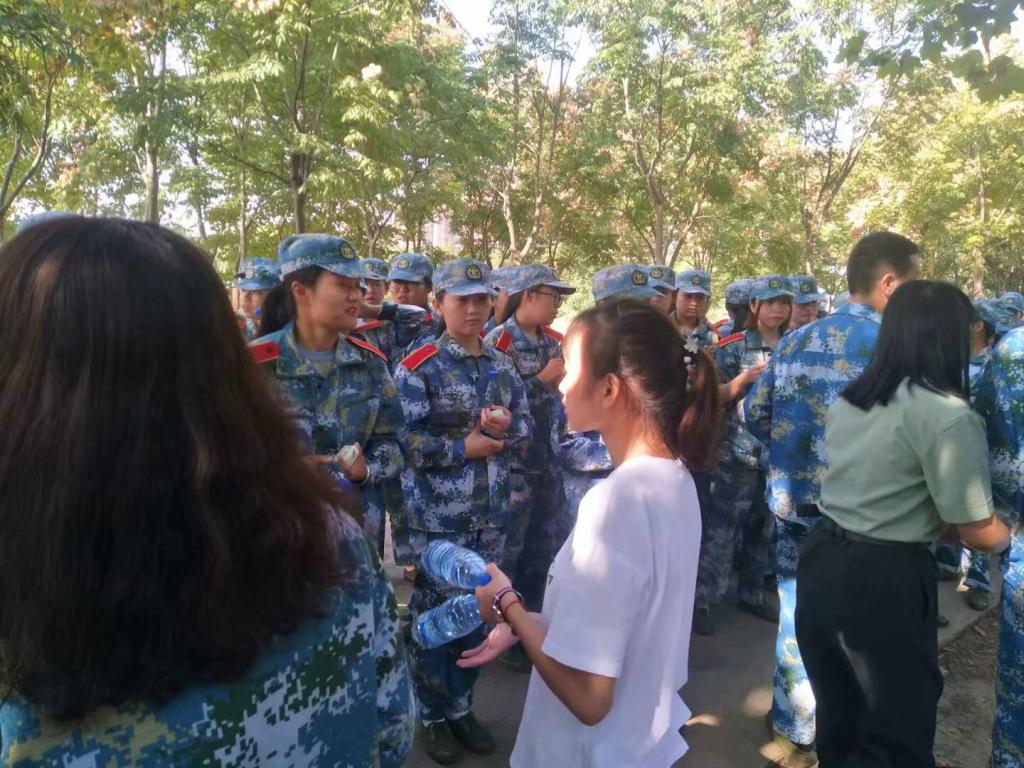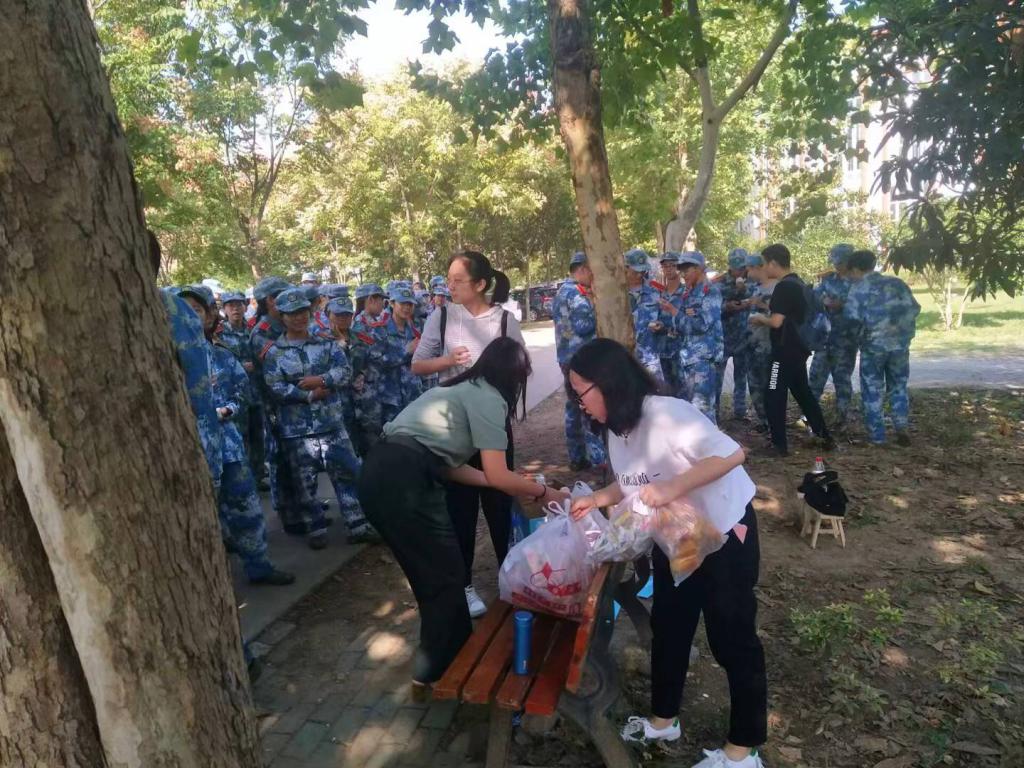 9月23日上午,91传媒 “中秋探望新生活动”在91传媒 阳逻校区问津食堂外顺利举行,学院团学联成员和17级学生代表与正在军训的18级思想政治教育专业的学生进行面对面交流,并送去了水、月饼、零食等中秋节的祝福与慰问。