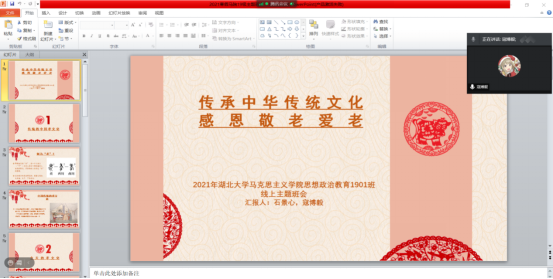 2月8日下午,17级思政班召开了以“传承中华传统文化,感恩敬老爱老”为主题的线上班会活动。