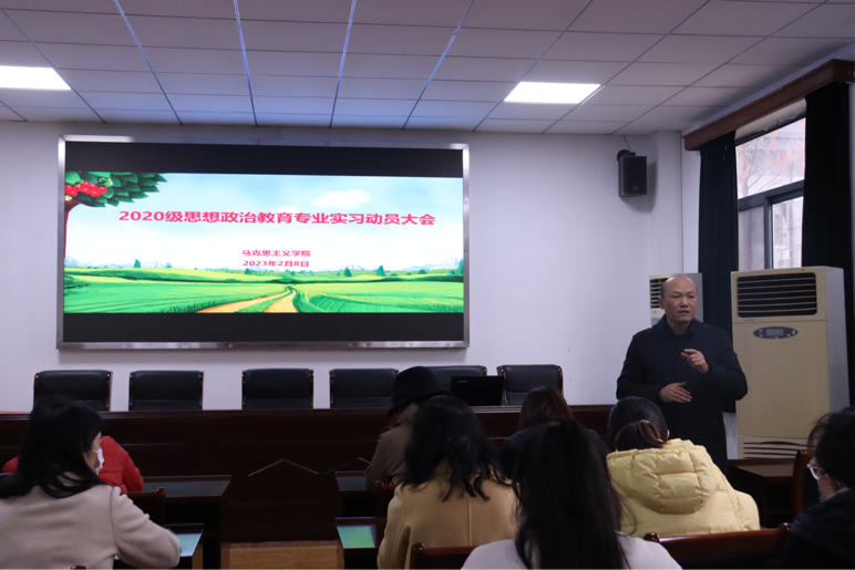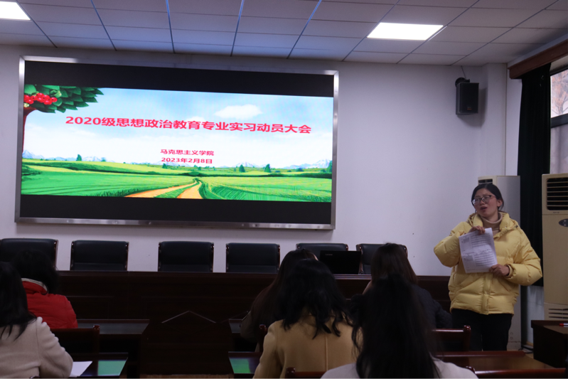 2020级思想政治教育专业教育实习动员大会,在教二410教室如期举行。学院副院长徐信华,2020级全体指导教师和在校实习学生参加会议,政教系副主任胡银银老师主持动员会议。