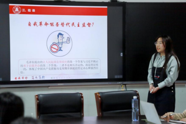 宣讲团成员刘卓凌以文字、图片、视频、讲解相结合的方式讲述作者埃德加·斯诺编写《红星照耀中国》的中国之旅,从追本溯源、继往开来与青年责任三个方面进行了学理阐释。