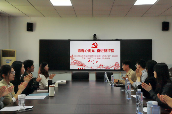 “红色之声”宣讲团开展了以“青春心向党,奋进新征程”为主题的联合宣讲活动。学院党委副书记晏妮、学院宣讲团部分成员及中国地质大学91传媒