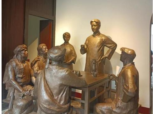 8月9日上午,调研团队前往武汉八七会议纪念馆探寻红色基因。纪念馆通过大量视频、图表、油画、雕塑、场景复原等视频等艺术表现手段,展现党在大革命由高潮转向失败过程中对中国革命道路的艰辛探索,揭示了“不忘初心,继续前进”的时代内涵。”