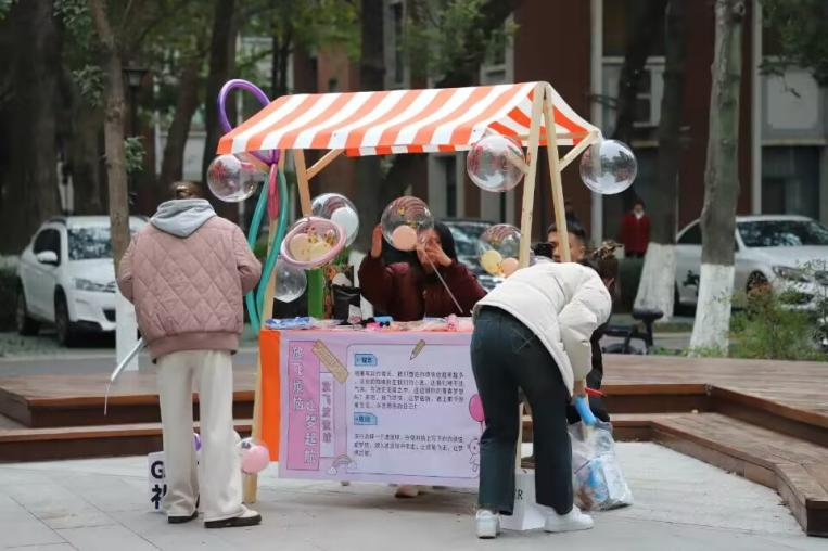 2022级金融学的廖新云感受颇丰:“这次游园会活动很有趣味,可以激发我们的动手能力,自己发挥想象去编手链,去给石膏像填色,去做气球,让我们在学习之余感到轻松和快乐。”