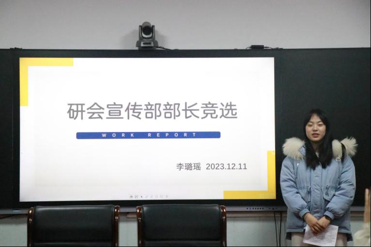 在部长竞选环节,办公室黄静、学术部李雨婷、宣传部李璐瑶、文体部党崇薇、生活权益部任泉以及闫雨来积极参与。各竞选者围绕个人介绍,工作心得及未来展望发言。他们将推动马院研会的繁荣与进步,为组织的未来发展贡献力量。