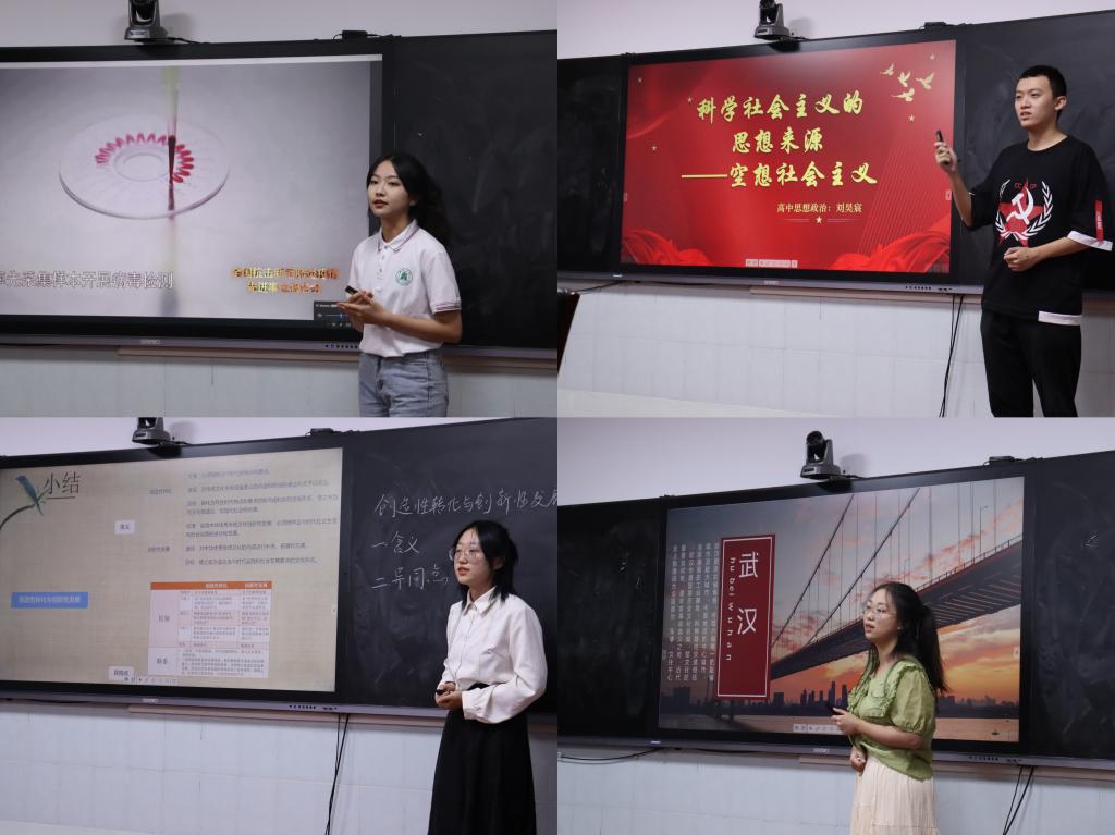 各位参赛选手同台竞技,各展风采,他们用饱满的热情、精彩的案例、严密的逻辑,掀起教学技能比拼的热潮。思想政治教育专业2001班王子怡说:“此次比赛真是‘神仙打架’,同学们的表现深深震撼了我,也激励着我不断向前。”