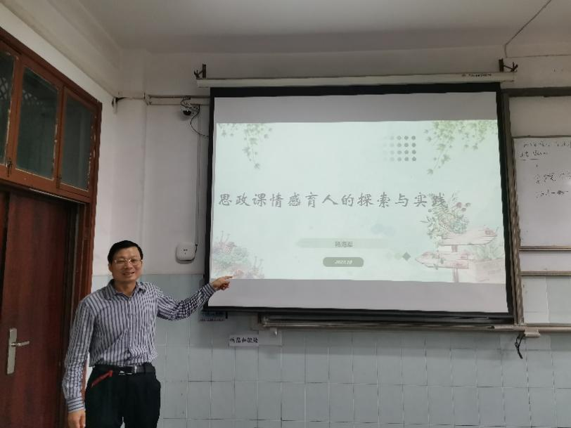 杨老师结合自身教学实践经验和习近平总书记在学校思想政治理论课教师座谈会上的重要讲话,从“思政课”、“情感育人”和“思政课情感育人的路径探寻”三方面向大家详细讲解了思政课教师如何通过思想政治理论课实现情感育人的价值与功能,把情感育人融入思想政治理论课教学全过程。一是优化教学设计,构建情感目标;二是建立民主的师生关系,营造愉快和谐的情感氛围;三是挖掘教学内容中的情感因素,实施情感育人;四是选择情感教育方法,激发学生的情感需要。同时结合现实案例,进行了系统的讲解。