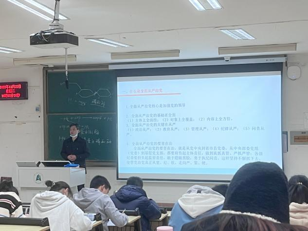 11月22日下午,学院党委书记刘柏林老师在四号教学楼407教室,为学院思想政治教育专业19级、20级、21级本科生讲授题为“坚持全面从严治党,实现民族伟大复兴”的形势与政策课。