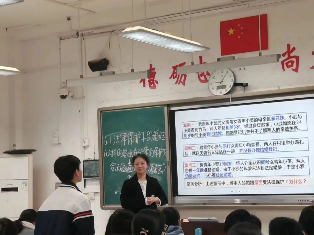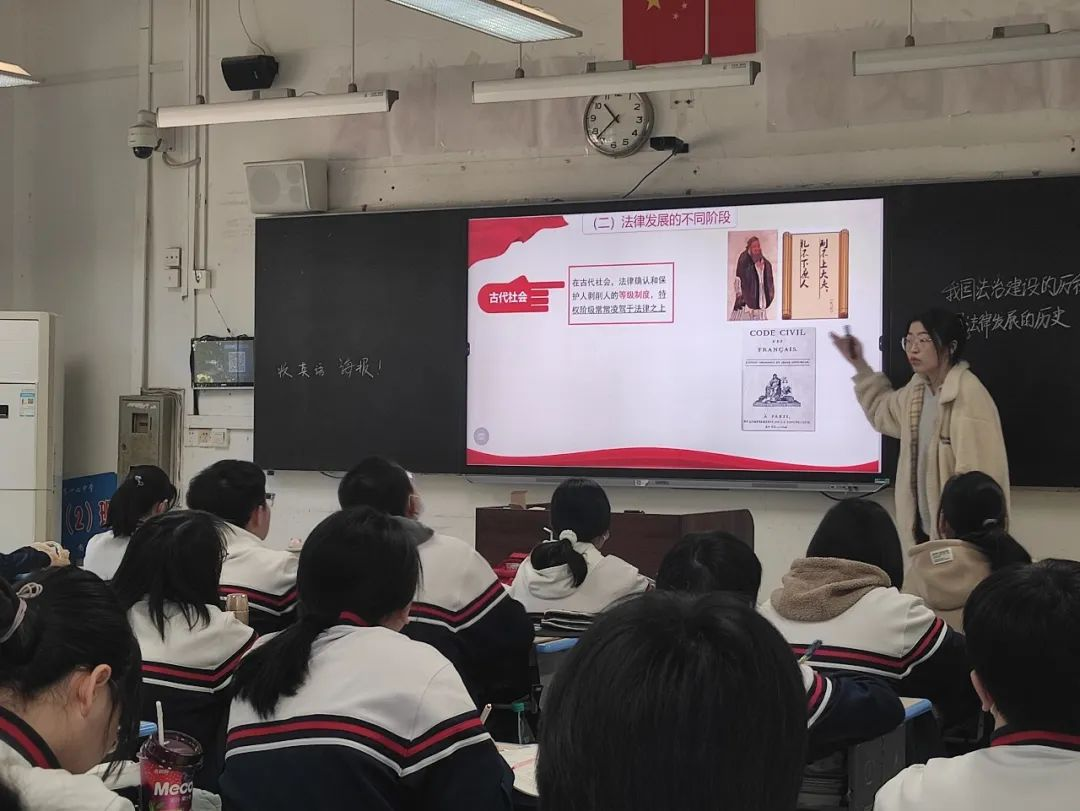 何影:作为实习政治教师,我在带教老师胡春容的指导下,在不断地熟悉教材、听课、试课中,磨练了自己的专业能力,共讲授20节公开课、新授课、复习课与评卷课。在课堂上,我充分地尊重了学生主体地位,注重在与学生的互动中激发学生学习的积极性。