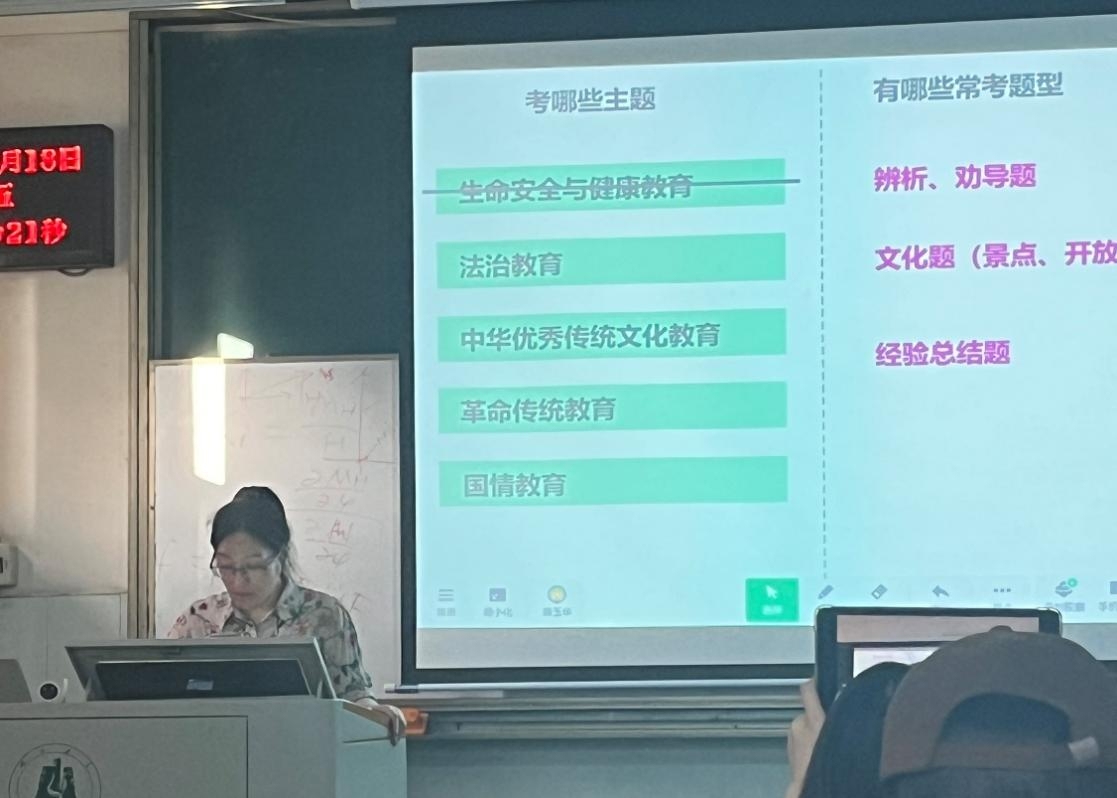 在分享环节,唐老师特别提到,她的课堂灵感大多来自真实生活实践,这样的教学设计不仅贴近学生实际,也让知识更加鲜活、易于理解。整场讲座气氛活跃,同学们纷纷表示收获颇丰,对新课标下的思政课教学设计有了更清晰的认识,为今后的教学实践积累了宝贵经验。