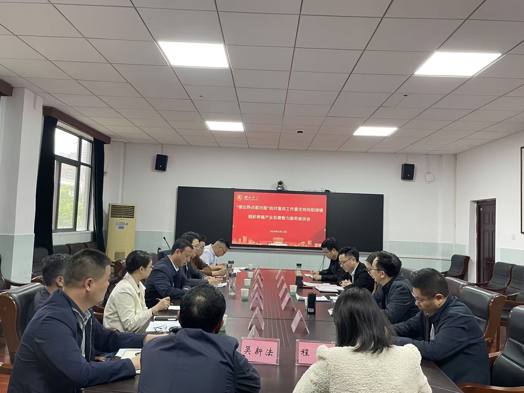 程文增副书记围绕向阳湖镇“有什么、想做什么、怎么做”介绍了向阳湖镇的气候特点、区位优势及产业发展现状,针对稻虾养殖业如何解决水稻种植的增产增收问题寻求智力支持和技术协助。