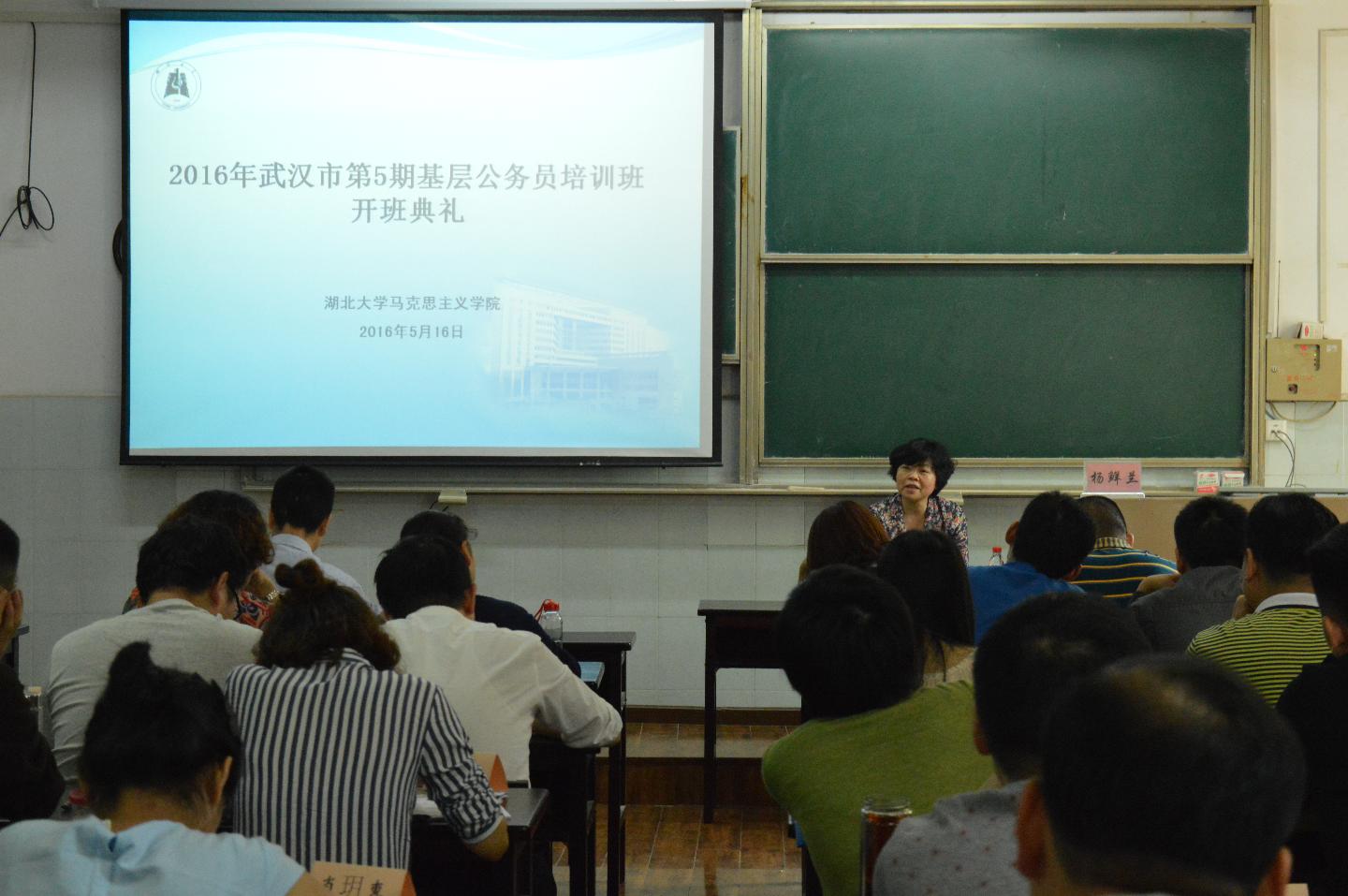 联合举办的武汉市第5期基层公务员培训班开班典礼暨首场报告在学校教二210教室举行。武汉市公务员局干部教育处副处长万达中,学院院长徐方平、副书记王雄等出席了开班典礼。开班典礼由91传媒