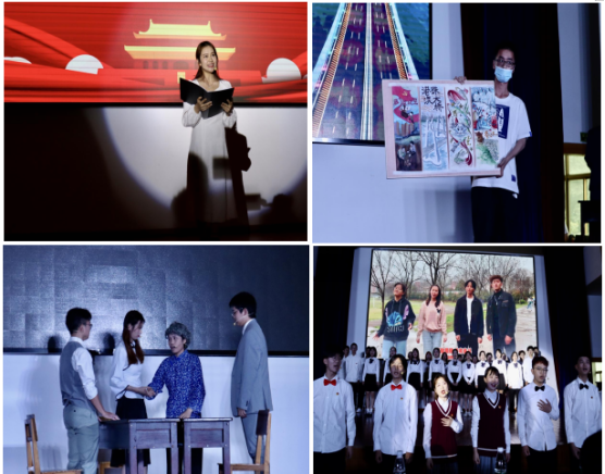在持续3多小时的活动中,同学们以微视频、话剧、演讲、三句半、配音、朗诵、绘画展示、合唱等多种形式再现党的百年奋斗历程,风格各异,让人眼前一亮。