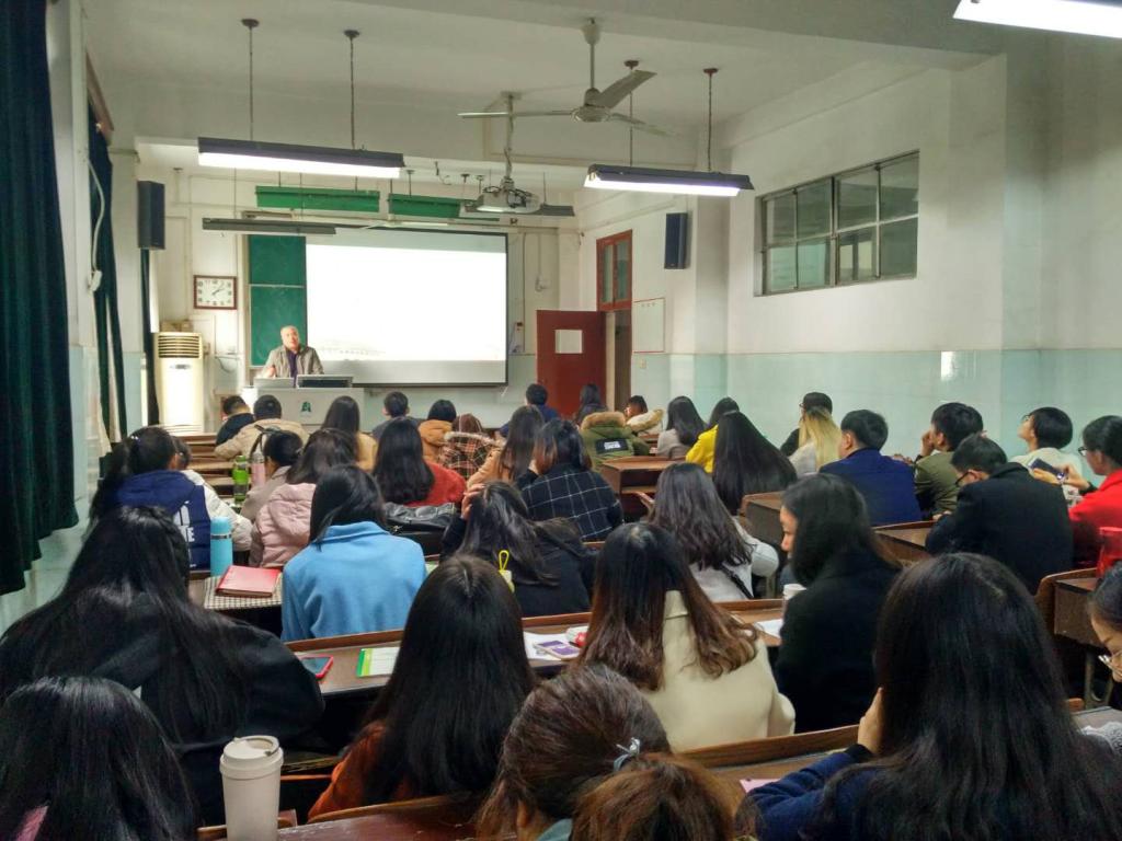 为深入学习宣传贯彻十九大精神, 11月22日下午2点,院党委书记汤德森在教2-411教室主讲题为“新时代  新思想  新征程——学习党的十九大精神体会”的党课报告,全体学生党员以及第8期党校入党积极分子到场聆听报告。
