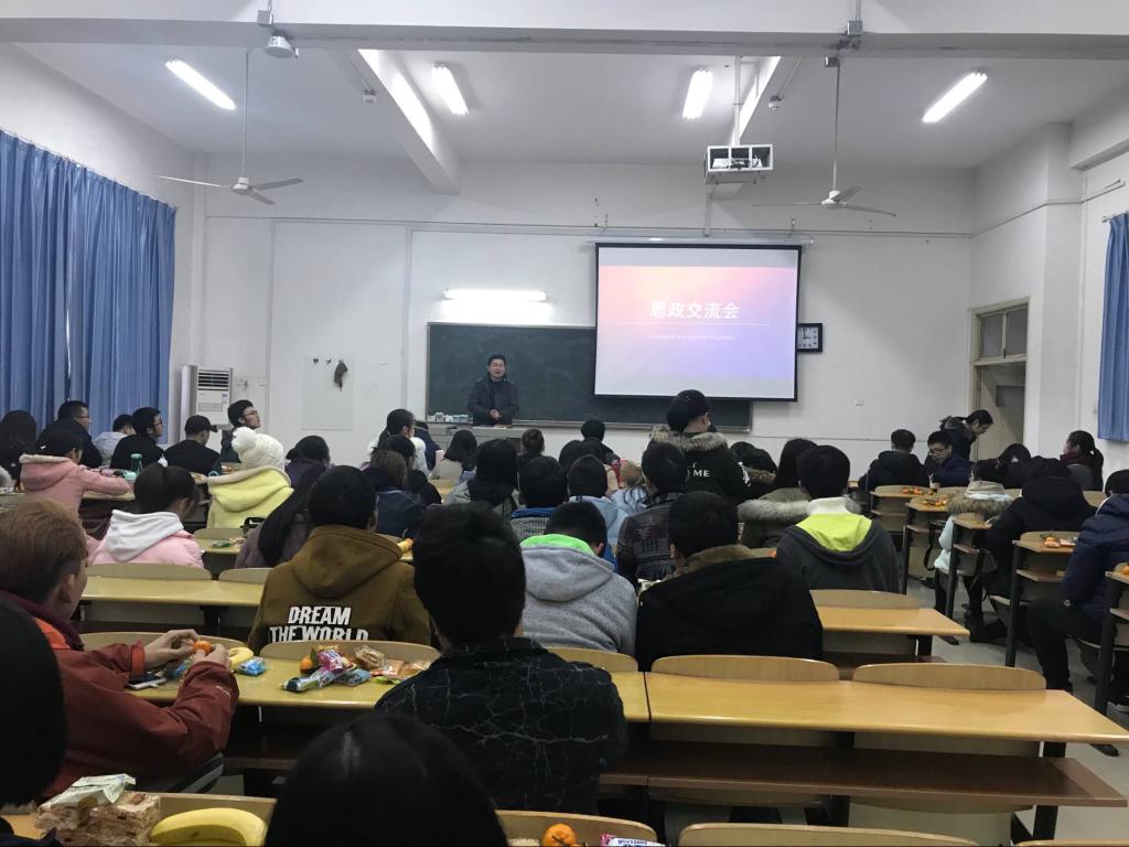 师生交流会在阳逻校区302教室举行。院长徐方平、副院长周芳,院党委副书记王雄、专业学习班主任郭劲松、通识教育学院辅导员姜艳艳以及15级学生代表魏颖、万聪颖、李奥美、洪维与17级思想政治教育专业的学生进行了面对面的交流,并送去新年祝福。