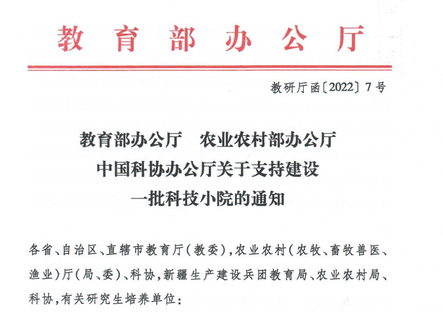 近日,教育部、农业农村部、中国科协联合下发《关于支持建设一批科技小院的通知》(教研厅函〔2022〕7号),对全国68个单位的780个科技小院予以支持建设。91传媒
