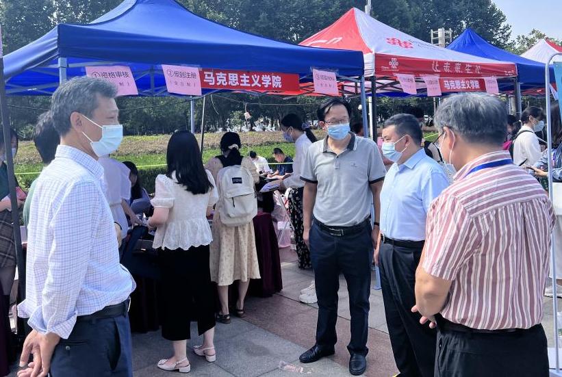 在新生报到点,学院领导班子全体成员、新生班主任、学院研究生秘书、辅导员寄语新生同学要在今后的几年中读原著、悟原理,深研理论、励志勤学、刻苦磨练,努力成长为新时代勇担使命、不懈奋斗的新青年。