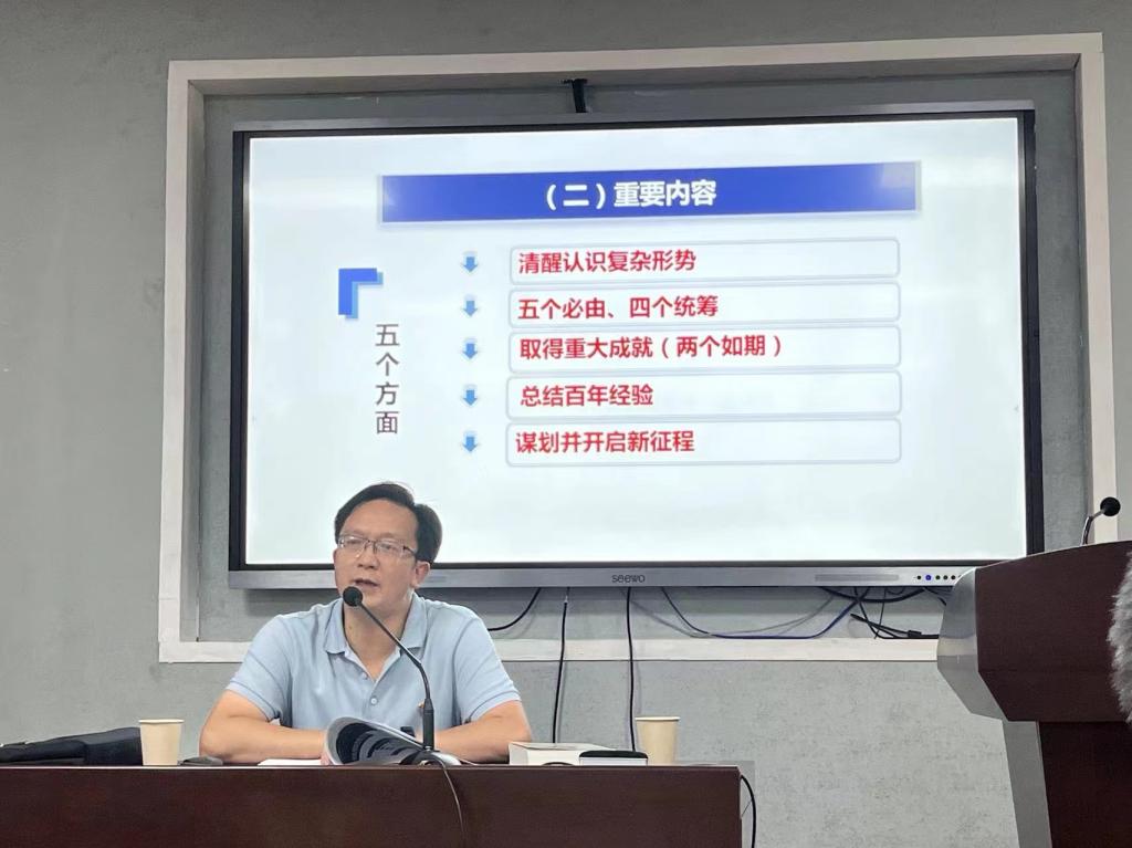 院长、教授、博士生导师熊友华以“马克思主义中国化时代化的最新成果—《习近平谈治国理政》第四卷学习体会”为题,在逸夫楼B6016会议室开展专题宣讲活动,文学院党委、继续教育学院党委、马院研究生宣讲团部分成员参加此次学习会。