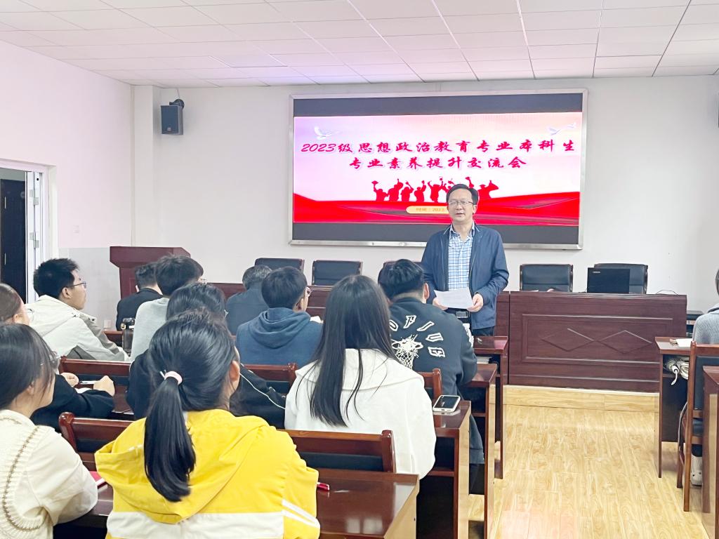 举办2023级思想政治教育学生专业素养教育活动,让同学们进一步了解学院办学情况及学科专业建设情况,增强专业学习热情和动力。学院党委书记刘柏林、院长熊友华、党委副书记晏妮、副院长易振龙、副院长徐信华、辅导员冷自衍、通识教育学院辅导员潘洒及2023级思想政治教育专业全体学生参与此次活动。会议由院党委副书记晏妮主持。