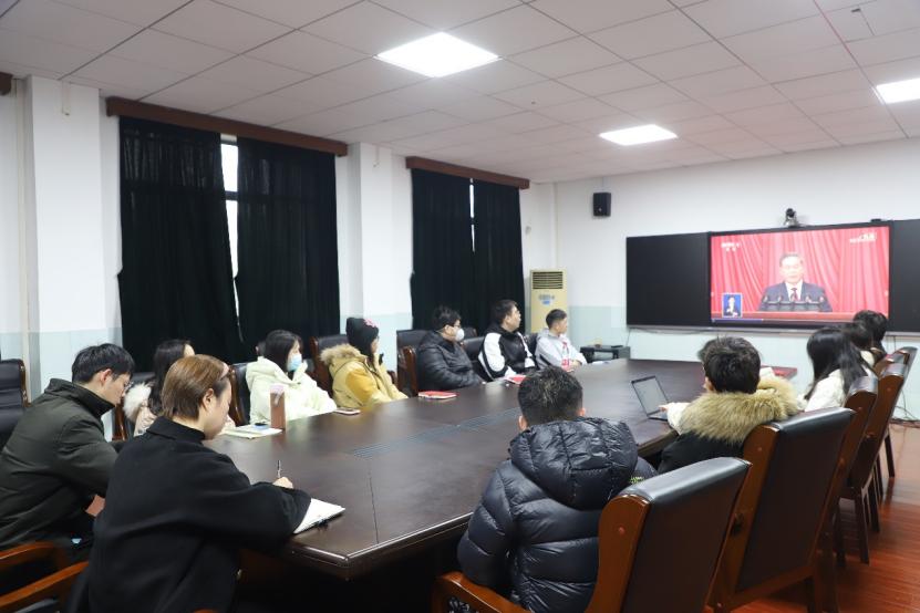 组织师生在学院四楼二号会议室集中收看开幕式直播。
