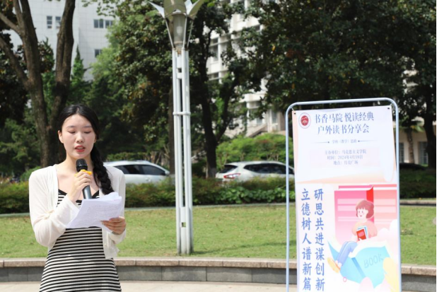 (通讯员祁丹悦 李璐瑶)春色恰如许,读书正当时。为响应2024“书香武汉·全民读书月”活动,营造健康文明的校园文化氛围,激发同学们对读书的兴趣,4月18日上午10:00,学科教学(思政)专场户外读书分享会在月亮广场举行。院党委副书记晏妮、硕士生导师陈晨、辅导员冷自衍、实习辅导员王瑨婧出席此次活动,23级学科(教学)思政专业全体学生参与本次活动。