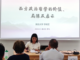 李婉芝副教授作了题为《西方政治哲学的价值、局限及启示》的报告她在报告中探讨了西方政治哲学的学术意义与实践意义,分析了西方政治哲学的经验与局限,告诉我们政治哲学研究要注重对重大时代政治问题进行哲学反思、批判和回应,彰显政治哲学的规导特性,注重政治哲学理论的创新和超越,重视个性化政治哲学体系的构建,总结了西方政治哲学对于我国构建中国特色政治哲学的启示。