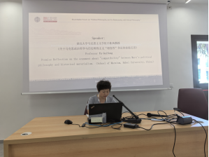 于桂凤教授作了《关于马克思政治哲学与历史唯物主义的“相融性”之争的前提性反思》的报告,她在报告中探讨了把握马克思的政治哲学与历史唯物主义是否具有相融性的前提,认为有必要实现两个“回归”。一是“文本回归”二是“问题回归”哲学批判、政治经济学批判和人类学三种研究范式共同形塑了马克思哲学别样的探讨政治问题的立场、观点和方法。